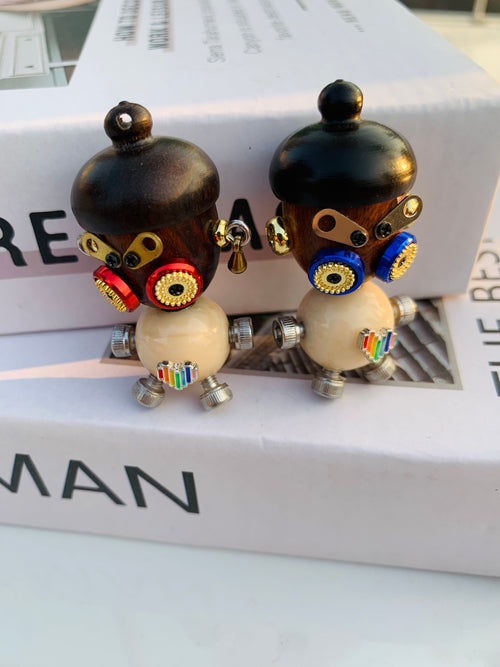 Handcrafted Retro Robot Pendant – Cute Art Doll Keychain Gift